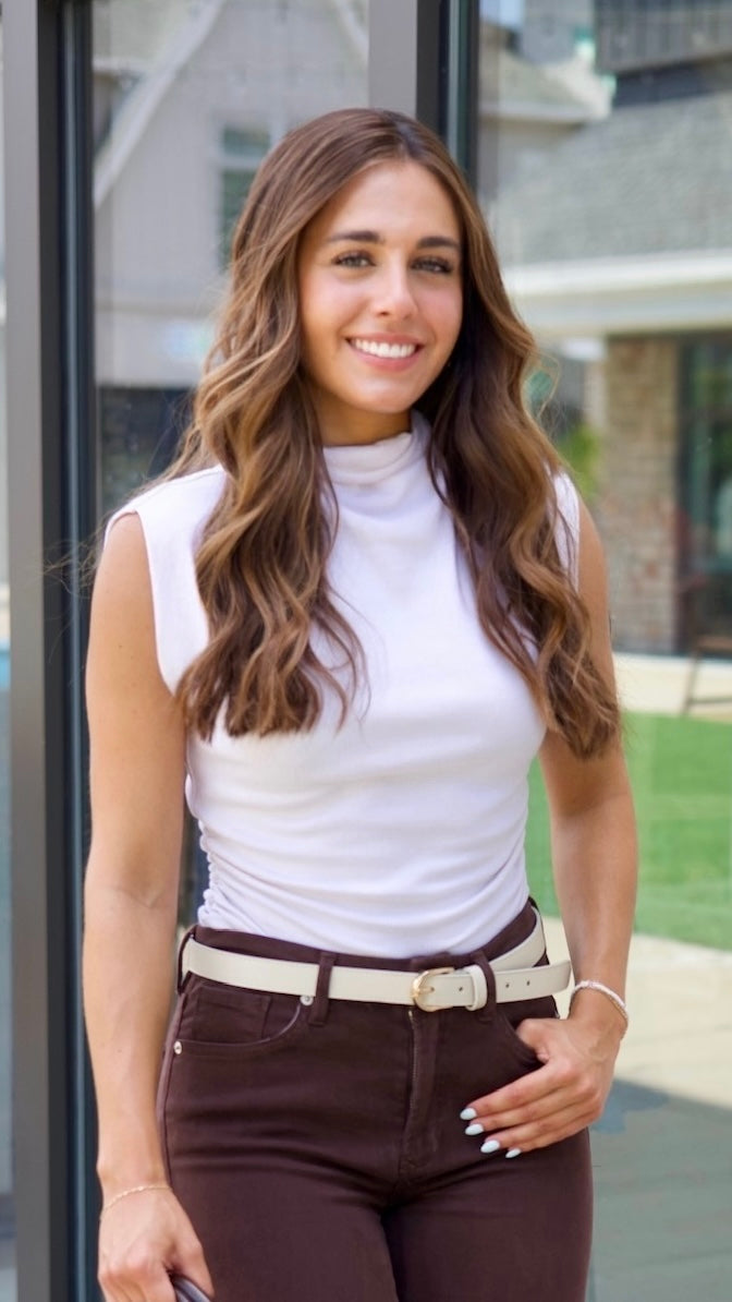 Introducing the Michael Stars Amara Mock Neck Top in timeless white. This wardrobe staple exudes elegance with its sophisticated mock neck design. Indulge in luxurious style with this elevated piece.