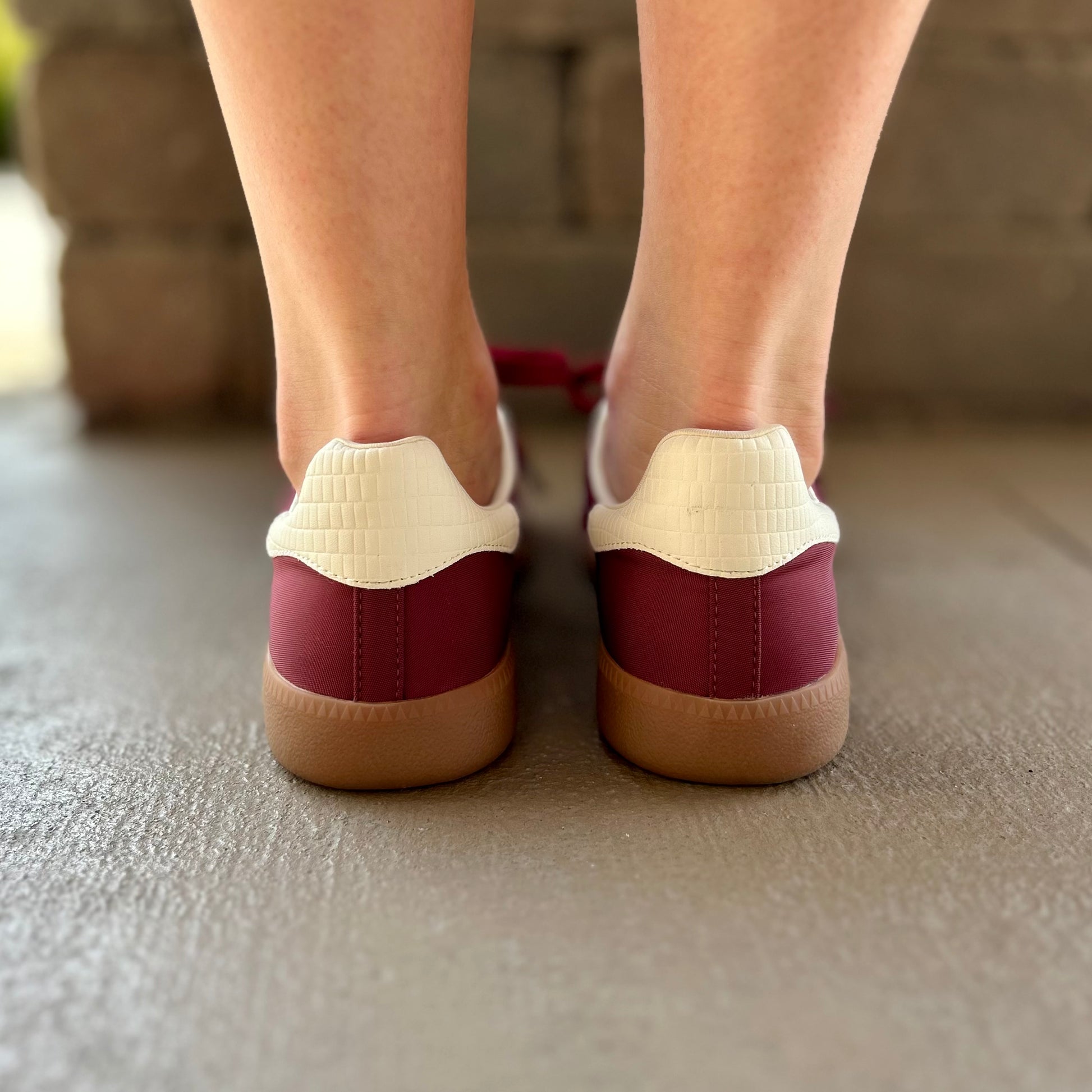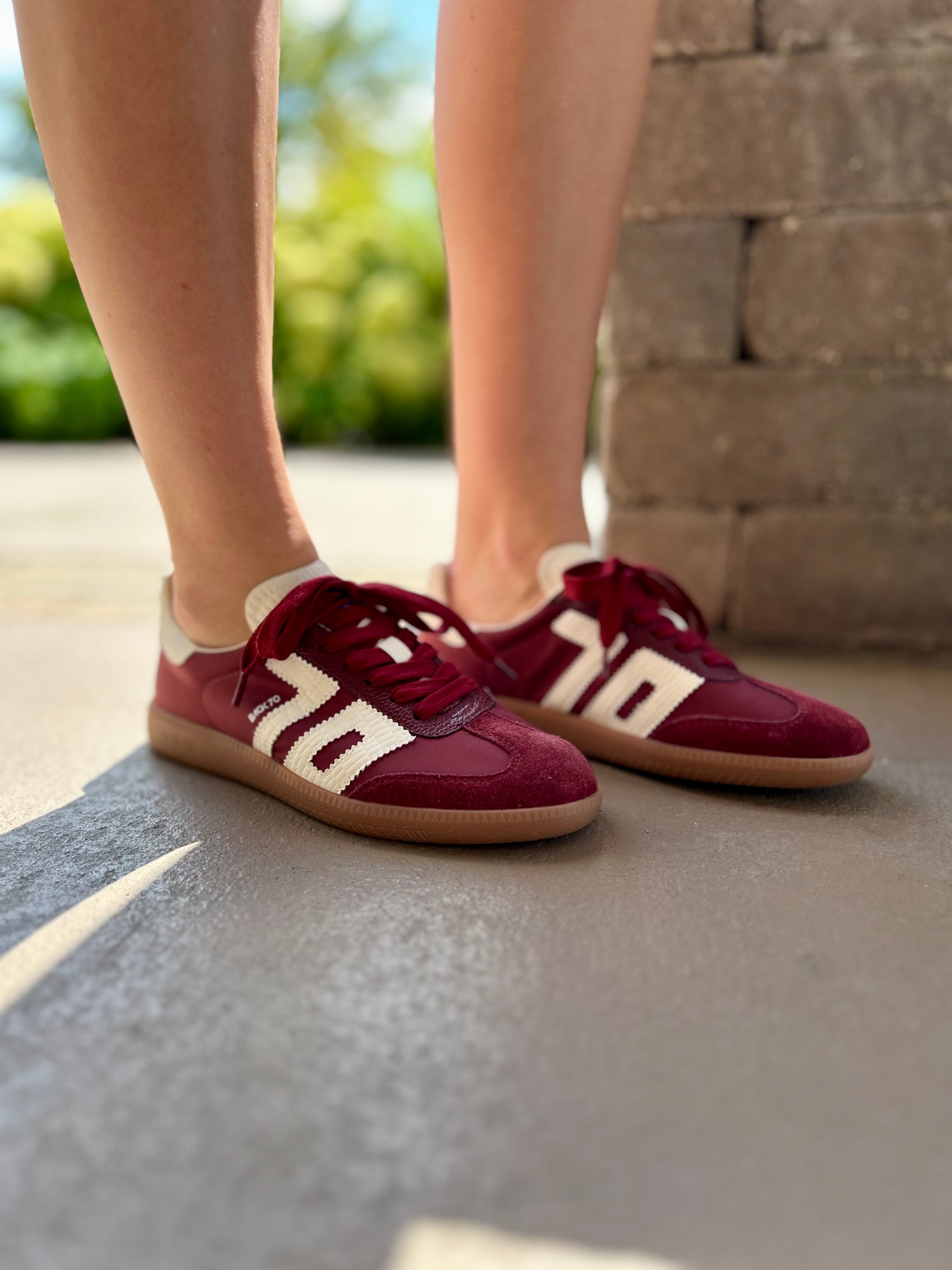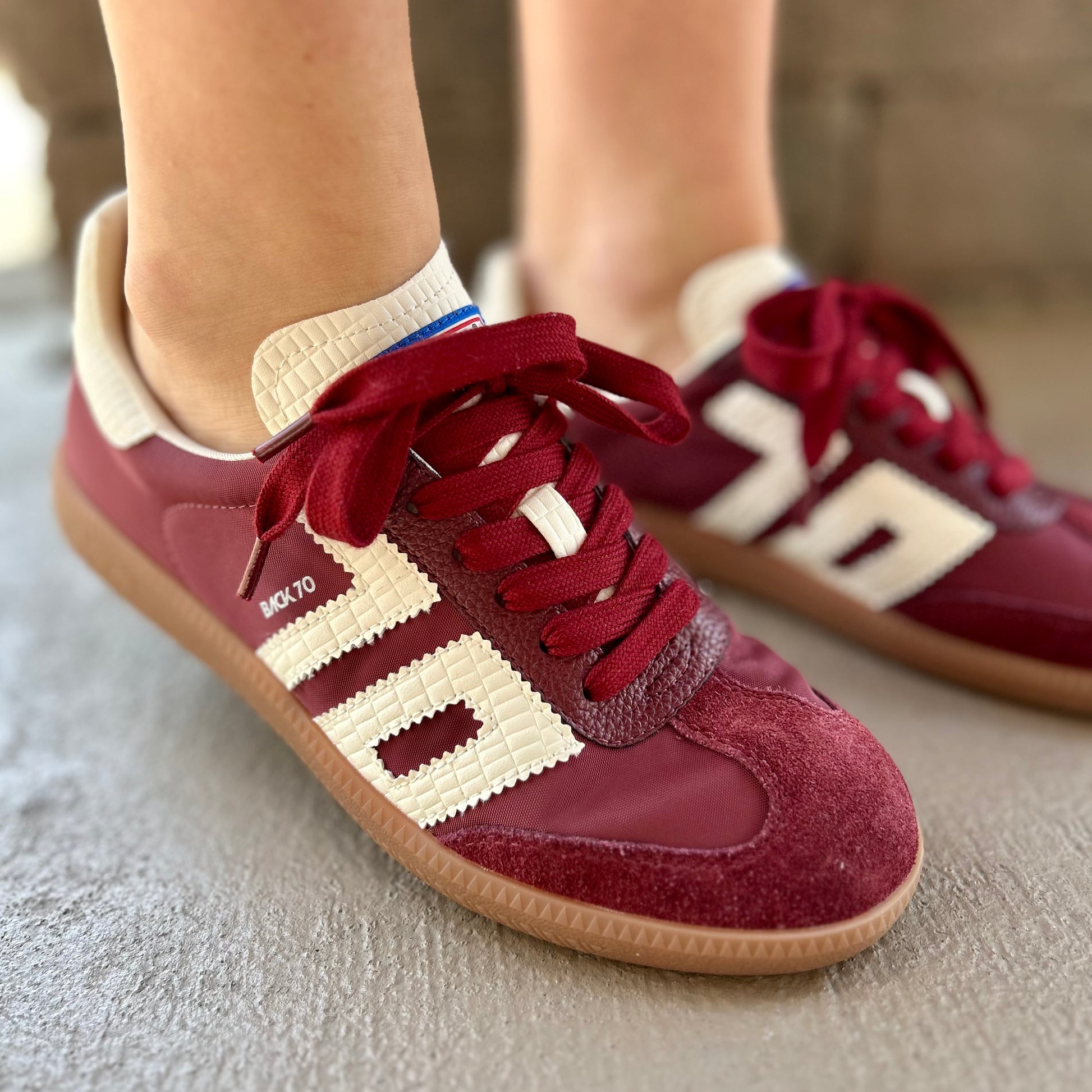 Introducing the Back 70 Ghost -Wine Milk, a perfect blend of elegance and durability. With its stunning burgundy wine color and cream details, this shoe is sure to make a statement. Made with a mix of canvas and leather, it offers both style and practicality for any occasion. Elevate your fashion game with this must-have accessory.