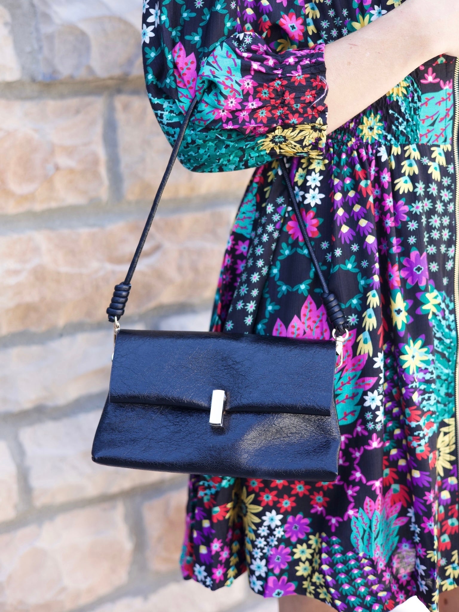 Elevate your style with this black crossbody bag featuring elegant gold accents. Its compact design keeps essentials close while adding a chic touch to any outfit. Perfect for hands-free convenience with a flair of sophistication for day or night.