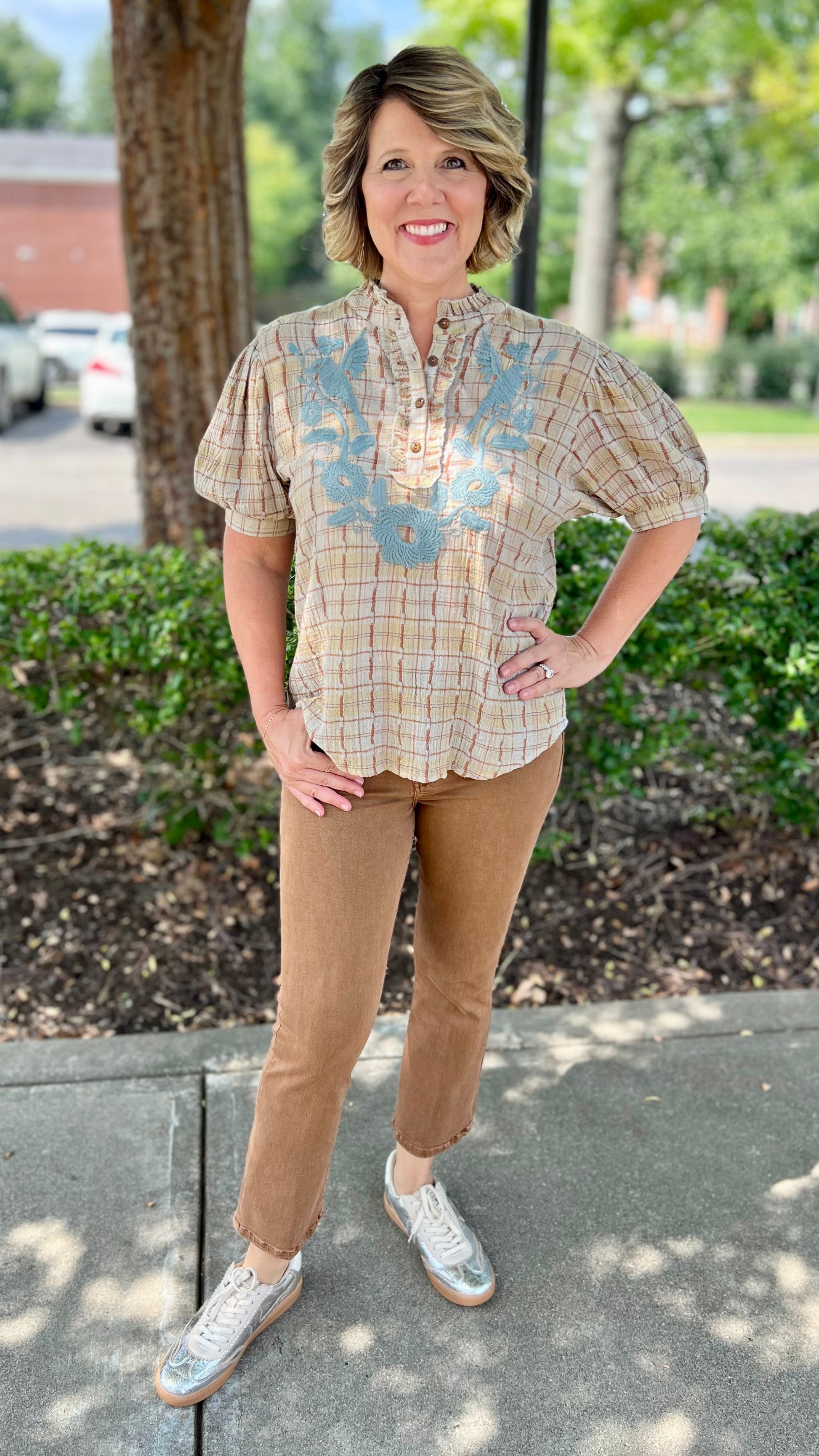 Ivy Jane Blue Embroidered Rustic Blouse
