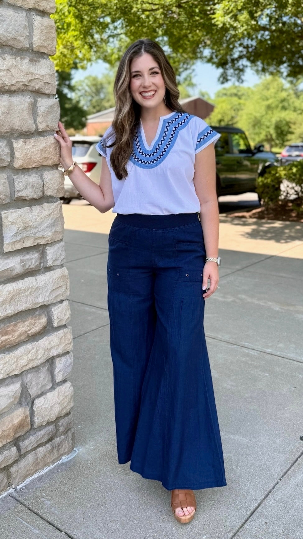 Brighten your spring and summer days with the Ivy Jane Bordered Popover. This comfy white top features a playful navy blue border that adds a fresh, stylish edge to your look. Lightweight and easygoing, it’s perfect for staying cool and chic all season long.
