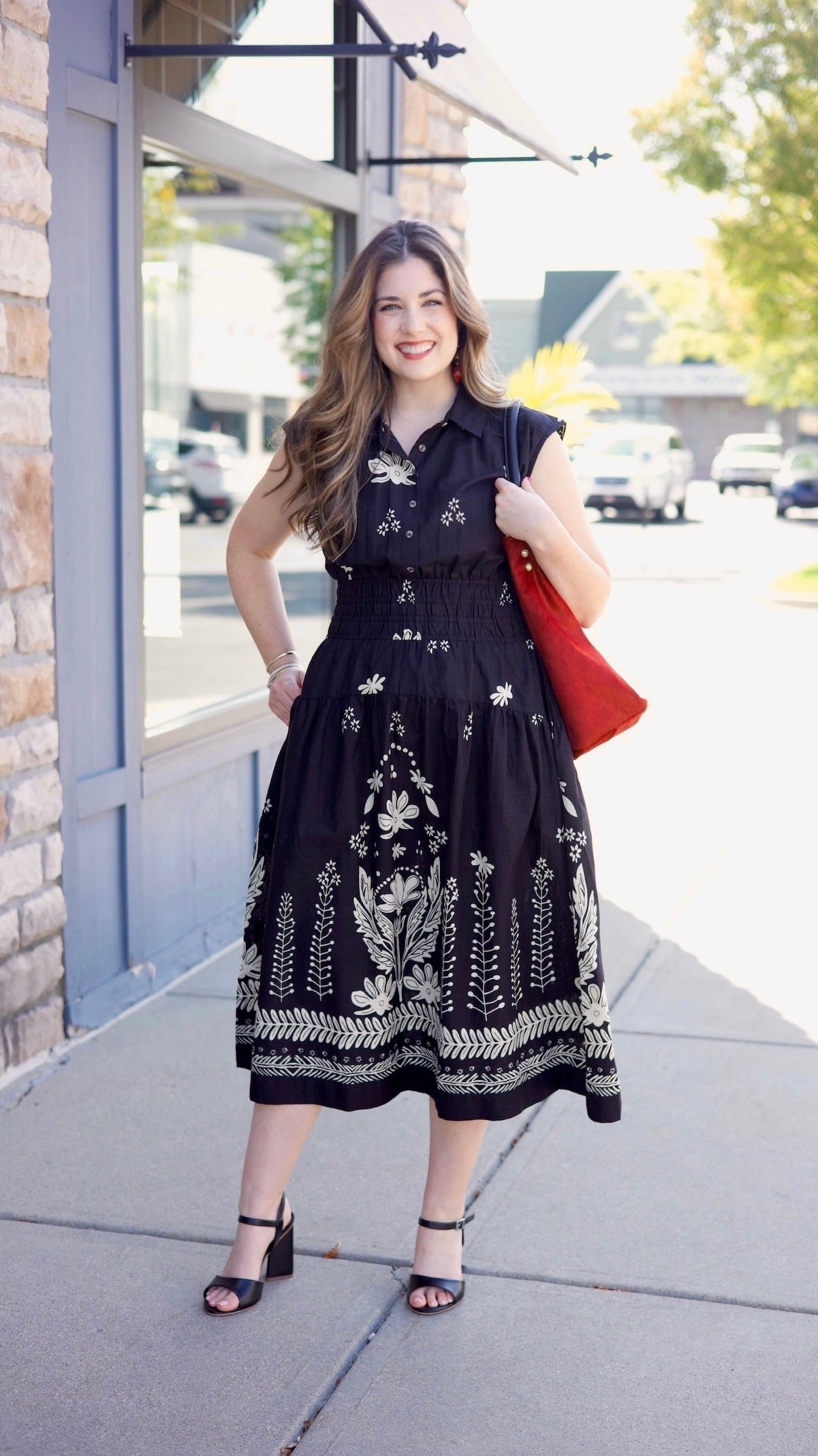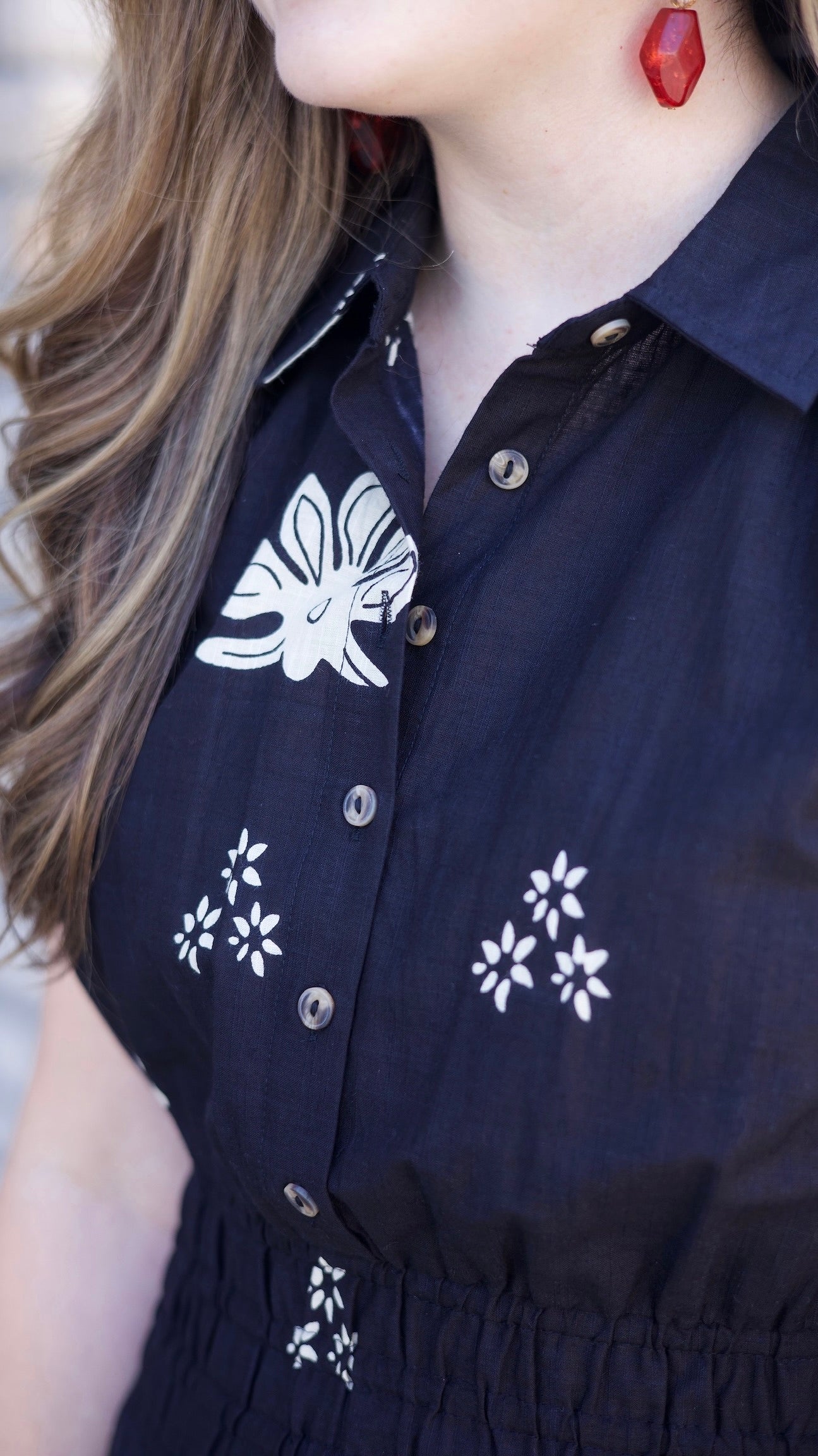 This Ivy Jane Bordering Flowers Dress combines classic black with delicate white floral accents for a stylish, eye-catching look. Featuring buttons down the front, this adorable long dress blends elegance with comfort, making it perfect for a variety of occasions where you want to stand out effortlessly.