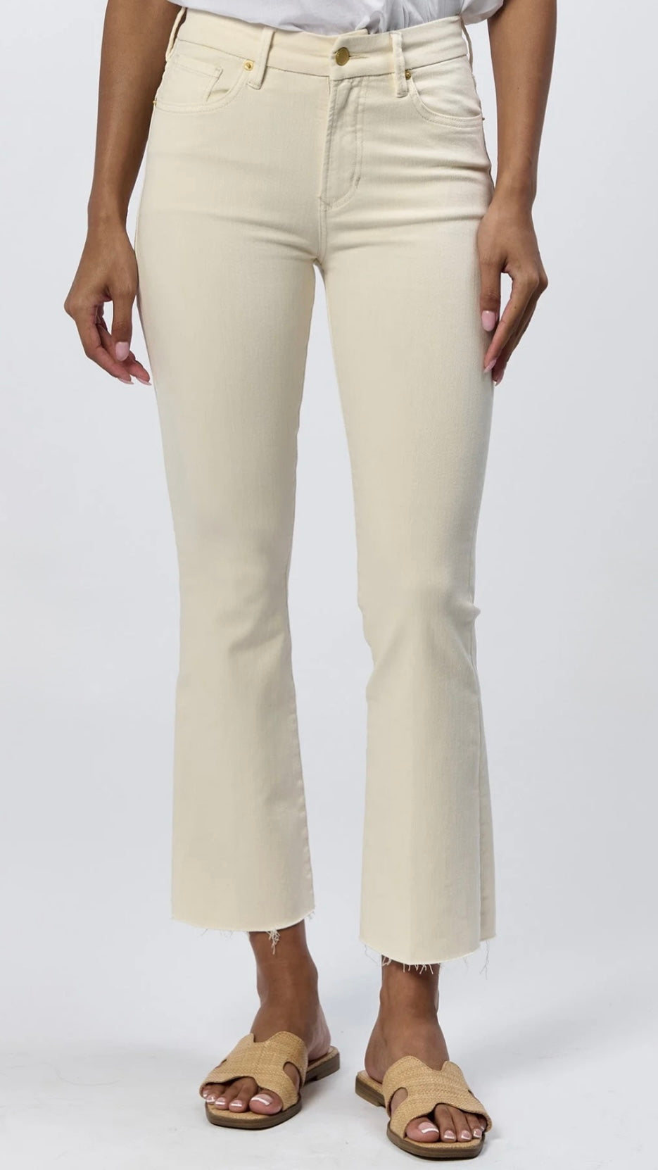 The perfect palette of colors in our Jeanne mid rise raw cut hem jeans in cropped inseam. These women's fashion staples are designed for those who enjoys comfort and versatility in their outfits. The flare cutting offers a silhouette to envy in stretch twill, while the contemporary raw cut hem adds an edge to your look. Ideal for both casual and chic occasions. Elevate your style with these comfortable clothing essentials, perfect for any lifestyle.