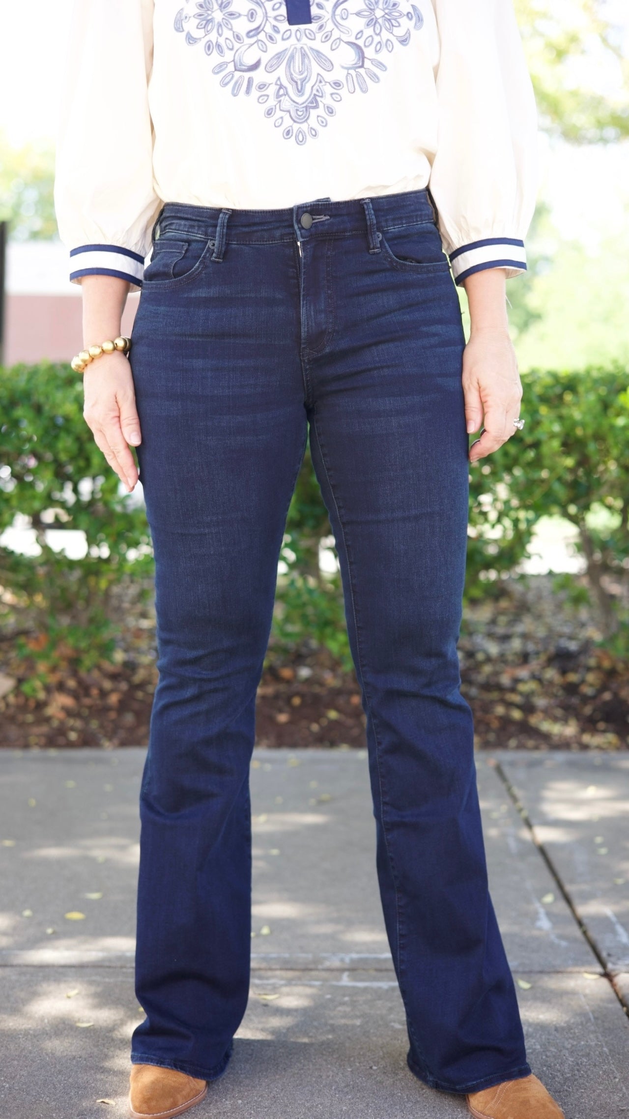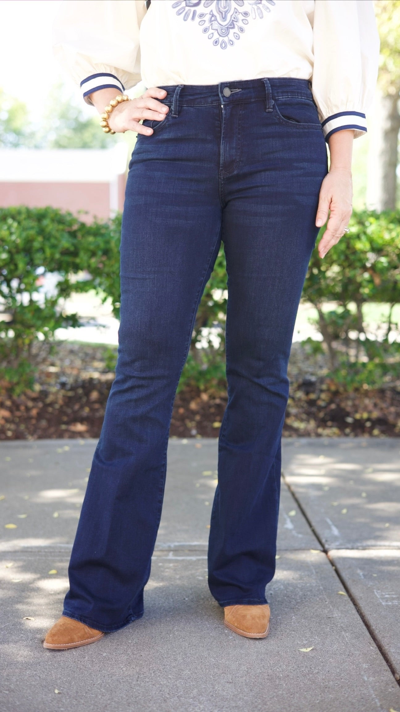 The Dear John Rosa - Blue Dream jeans showcase dark blue denim with a perfect fit that enhances your silhouette. Stylish and chic, these adorable jeans are perfect for fall and versatile enough for year-round wear, making them a fashionable staple for any wardrobe.