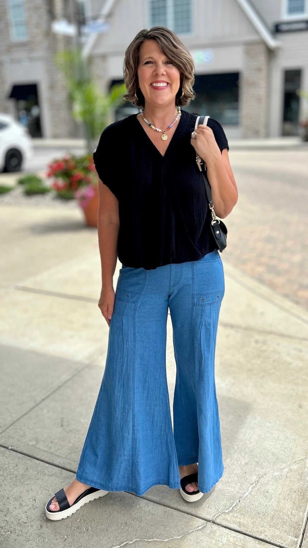 Step into effortless style with the Michael Stars Evie Faux Wrap Top in black. This cute and comfy top offers a perfect fit that flatters every shape, making it your go-to for any occasion. Its versatile design pairs easily with jeans or skirts, adding a stylish touch to your wardrobe. Whether you're dressing up or keeping it casual, this top brings playful charm and all-day comfort together in one chic package.
