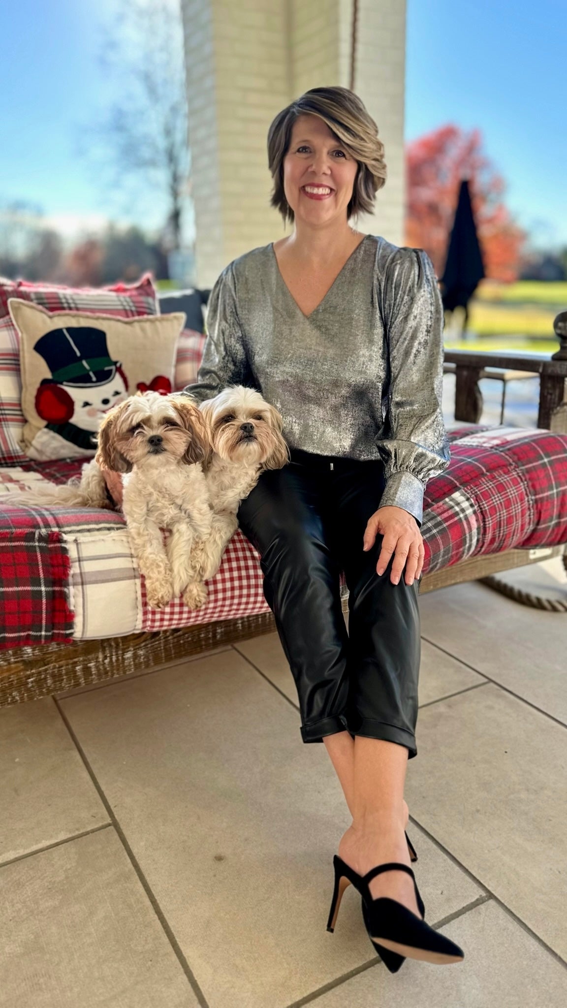 Get ready to be a real head turner with this metallic blouse! The unique gun metal color will have all eyes on you, while the comfortable fit will keep you feeling confident all day. A must-have for anyone who loves to stand out in style.  Runs true to size.  Kelly is in a medium.