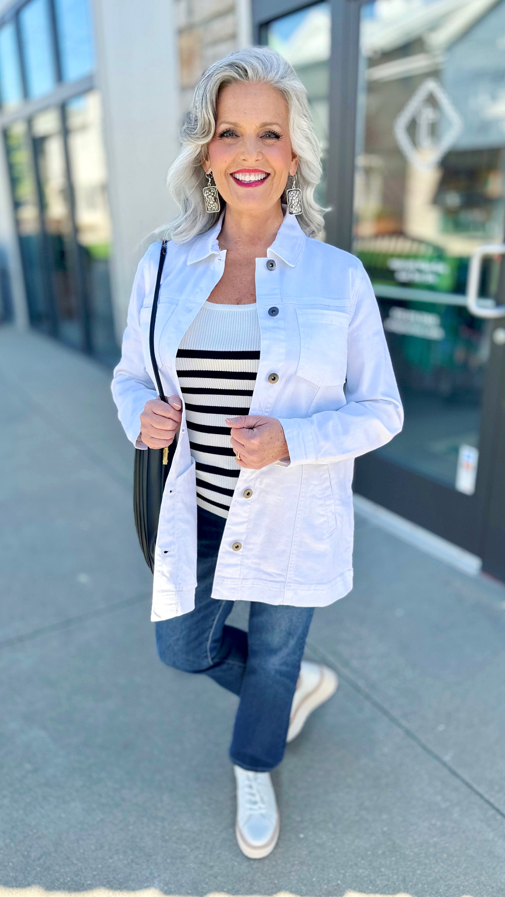 It’s the subtle, yet eye-catching layering piece of the season! Designed by Habitat, this White Denim Boyfriend Jacket is a Spring & Summer essential. The oversized fit, longer length, and attention to detail checks all the boxes for us!