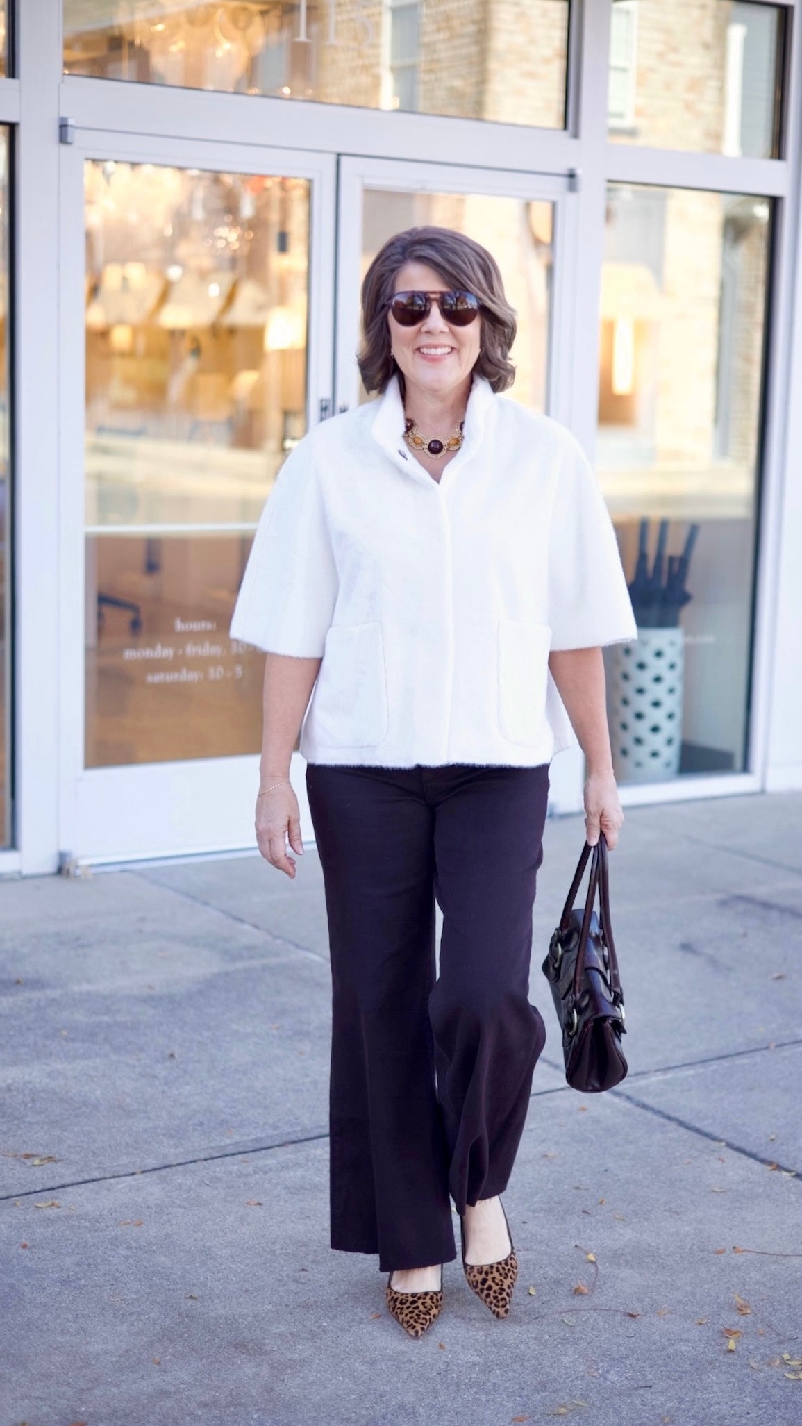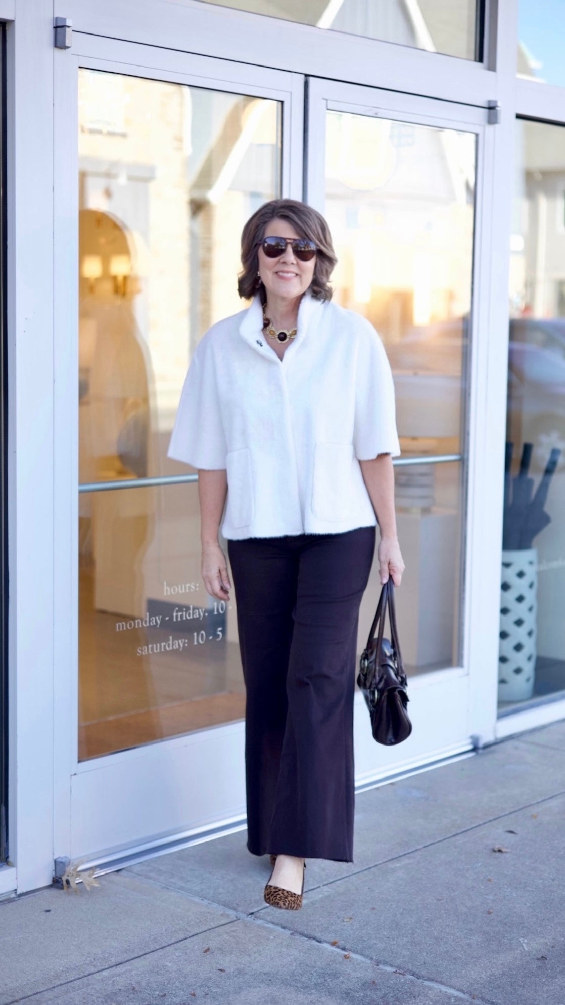 Elevate your seasonal wardrobe with this charming Ivy Jane faux fur capelet in crisp white. Perfect for layering over dresses or sweaters, this classic piece combines timeless elegance with cozy comfort. The luxurious faux fur drapes beautifully across your shoulders, adding instant sophistication to any fall or winter ensemble. Whether you're dressing up for a special occasion or simply want to stay warm in style, this versatile capelet delivers both polish and practicality.