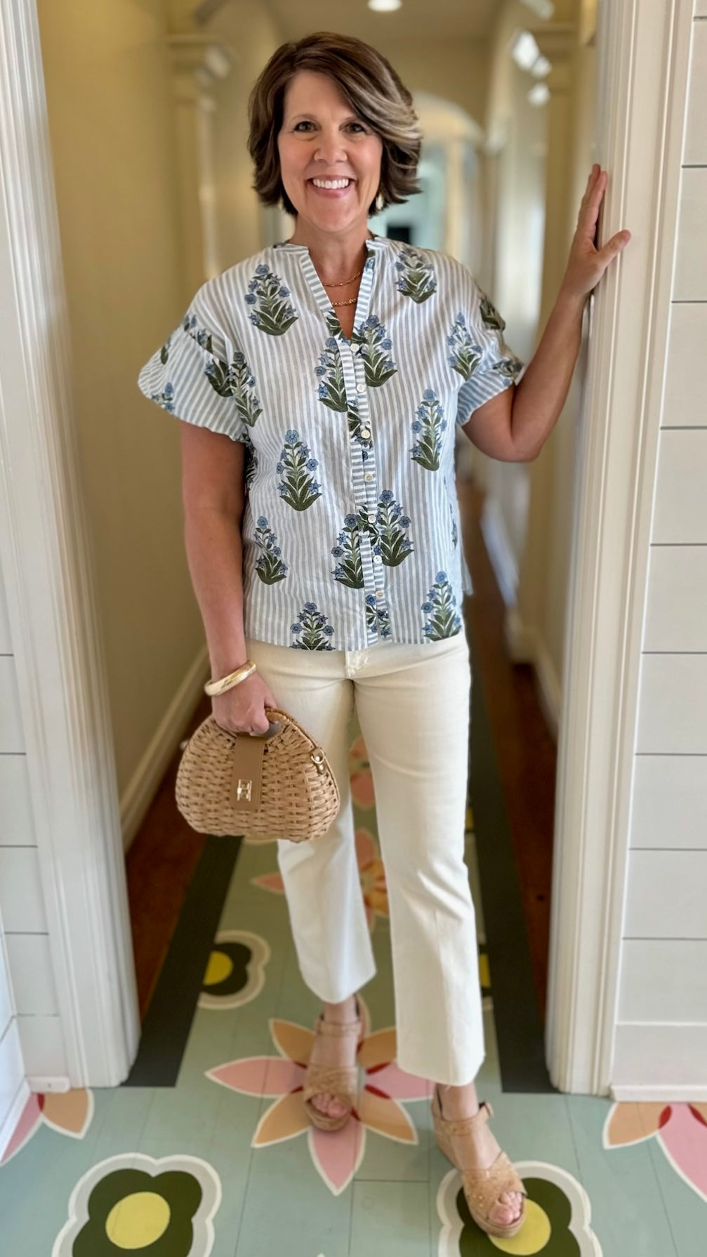 Get ready for some fun in the sun with this Ivy Jane Striped Block Print Top in vibrant blue. Perfect for spring, this top adds a playful pop to any outfit. With its unique striped design and quirky brand name, it's sure to be your go-to for fun and fashion.