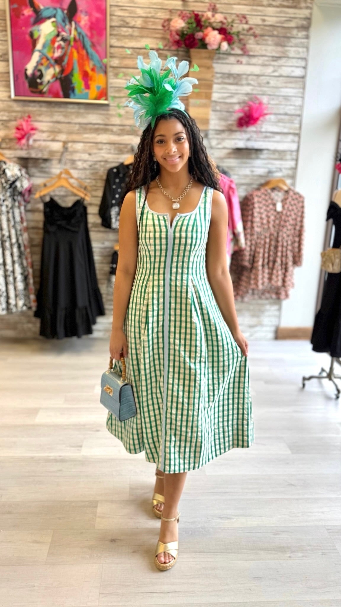 Melanie Gingham Check Midi Dress - Kelly Green