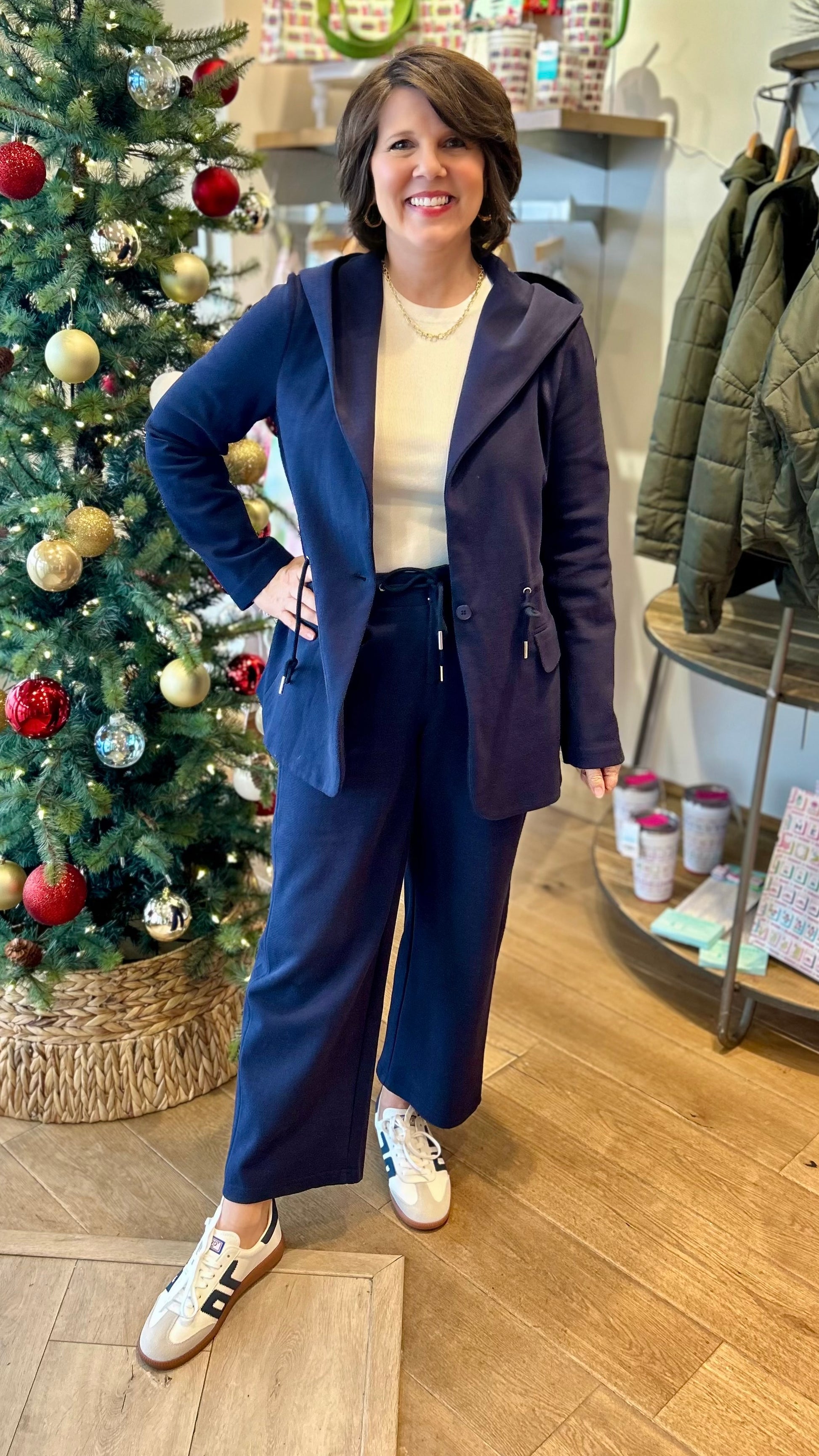 These navy pull on pants offer versatile business casual styling with convenient pockets. Perfect for the office or a night out, these pants provide both style and functionality. Experience the comfort and ease of these pull on pants for effortless dressing.