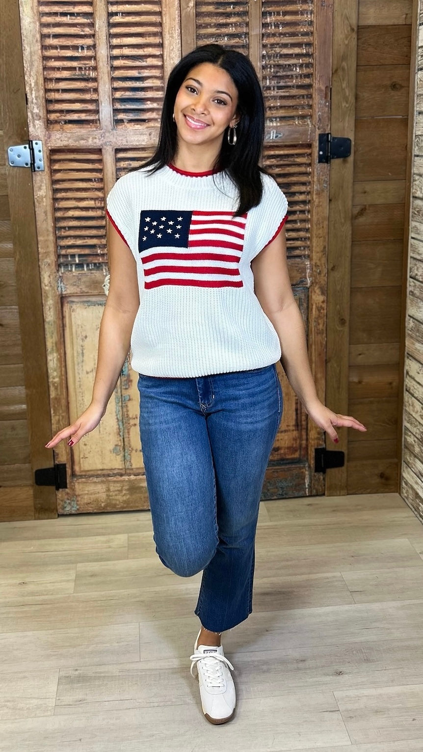 This off-white flag top is your go-to piece for effortless summer style. The sleeveless cut keeps you cool while the bold flag design adds character and flair. Dress it up with tailored pieces for a polished look, or pair it down with shorts for laid-back charm. Versatile, spirited, and undeniably chic, this top works as hard as you do—ready for whatever the season brings.