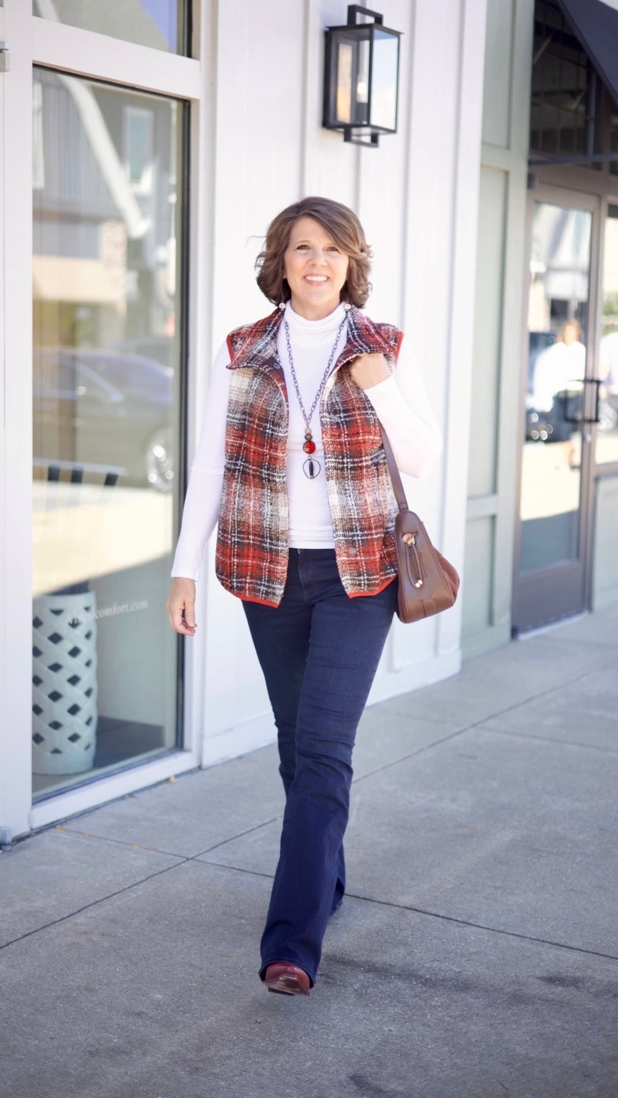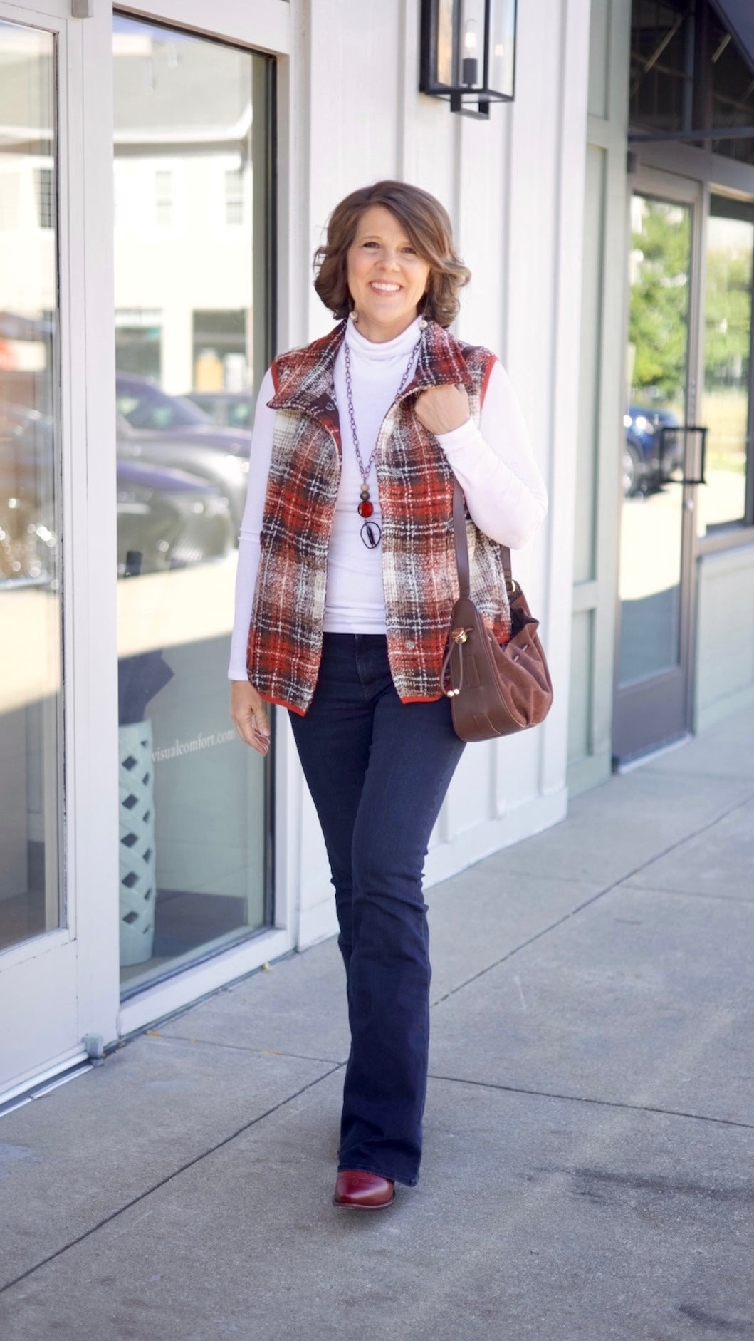 The Charlie Sweater Vest combines classic plaid with cozy warmth, perfect for adding a stylish, country-inspired touch to your outdoor wardrobe. Detailed and comfortable, this adorable vest layers effortlessly for a snug, fashionable look that’s ideal for relaxed weekends or crisp autumn days.