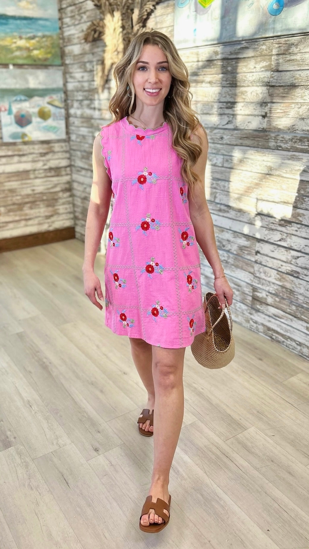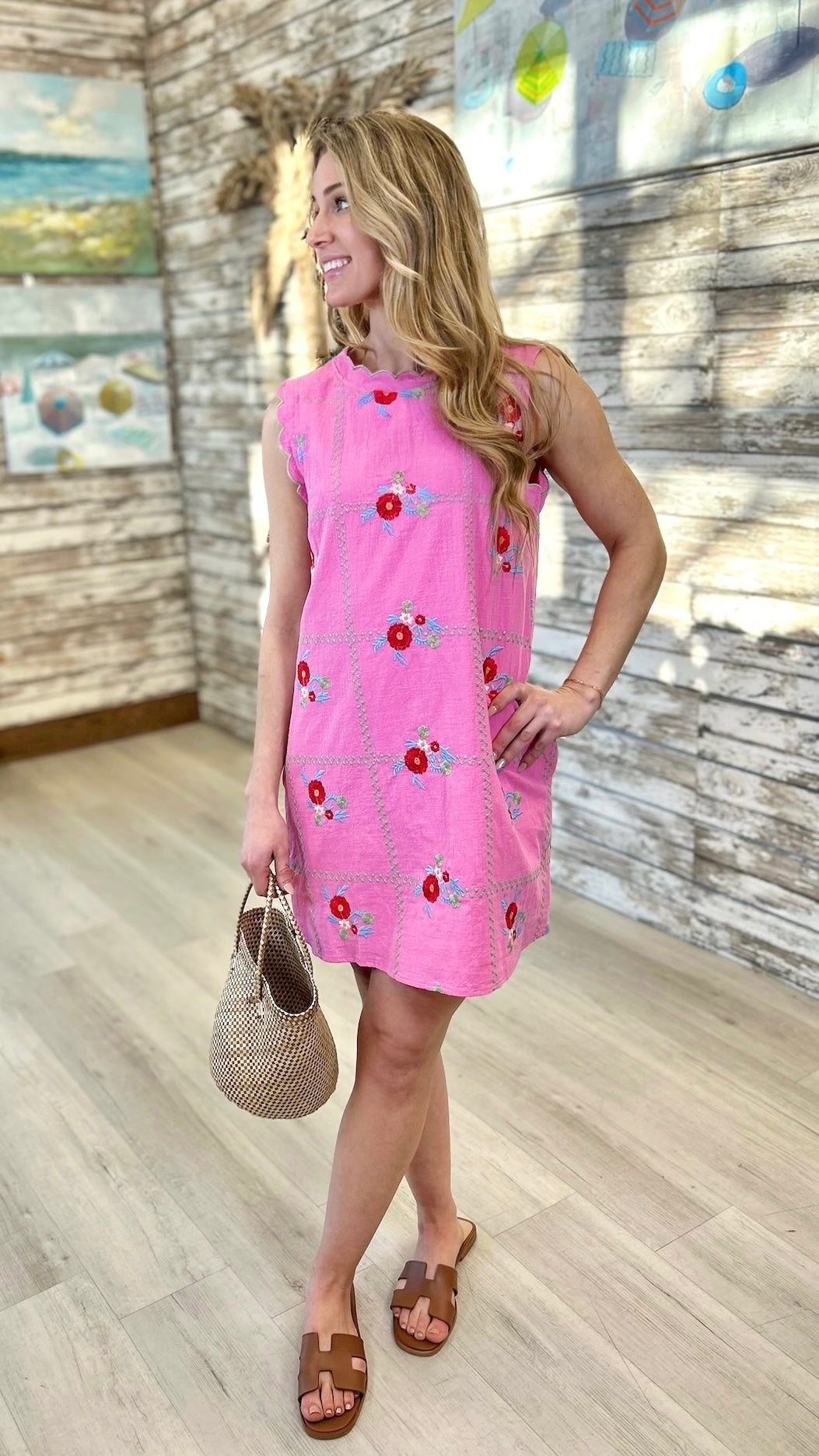 Meet the Lori Embroidered Dress in Pink—a sleeveless essential that radiates charm and sophistication. This delightful piece showcases beautiful embroidered accents in complementary colors that add visual interest and dimension. The thoughtfully designed silhouette flatters while keeping you cool and comfortable, whether you're dressing up for an event or keeping it casual. A wardrobe staple that proves style and sweetness go hand in hand.