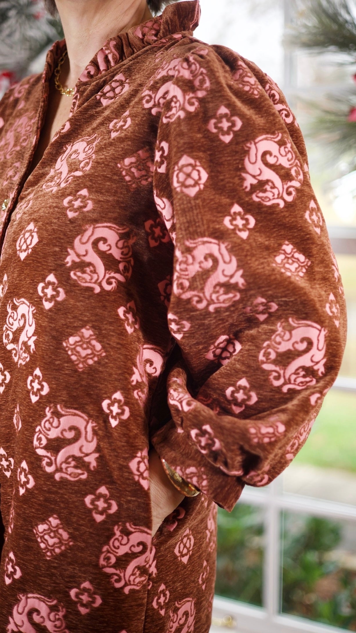 The Tay Tapestry Dress is a winter essential with its heavy weight fabric. Stay cozy and stylish in the camel and pink color combination, accented by elegant gold buttons. Perfect for any occasion, this dress is a must-have for the fashion-forward individual.