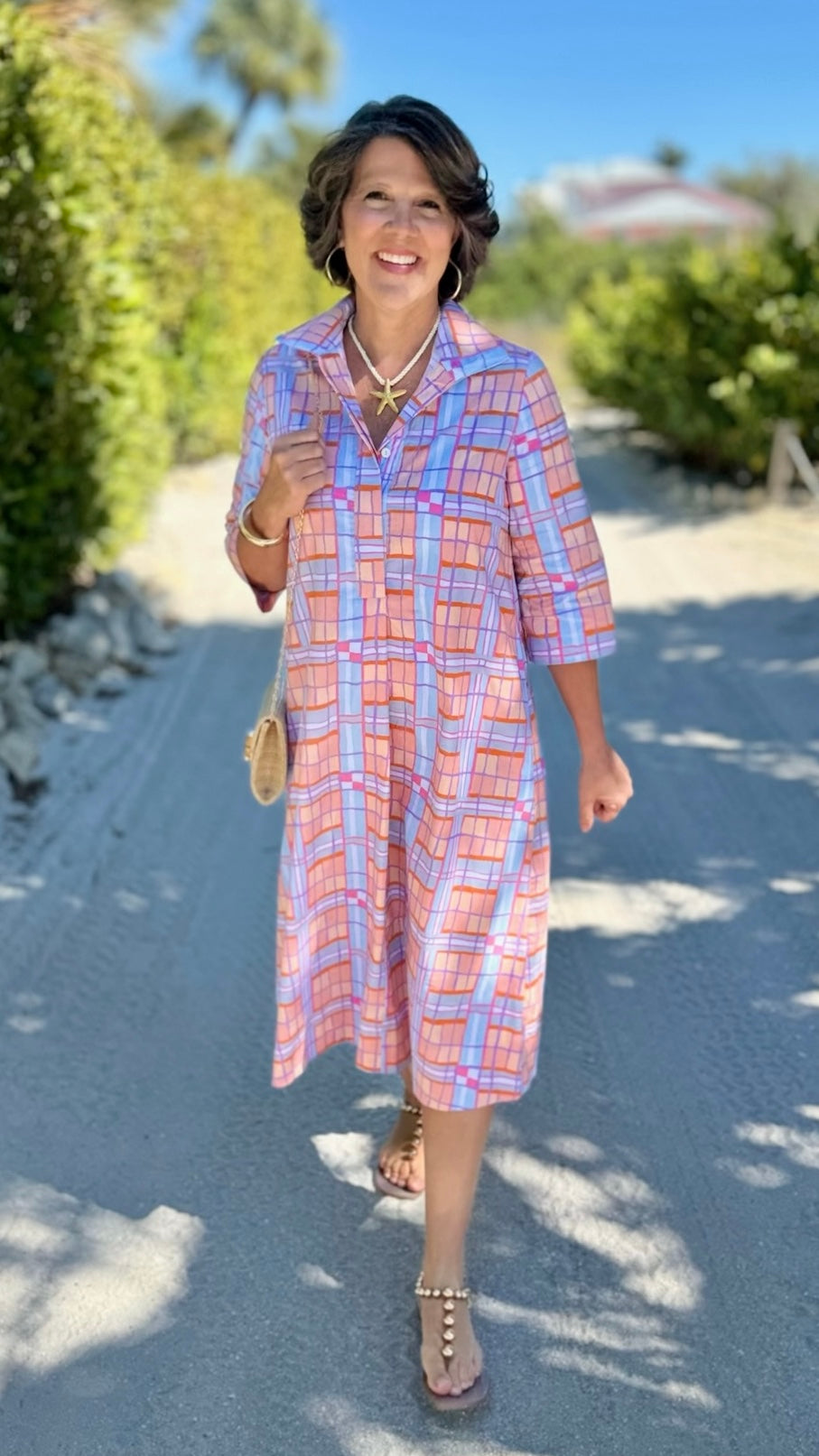 Elevate your spring wardrobe with this stunning plaid midi swing dress, featuring a gorgeous blend of pastel orange, blue, and purple tones that radiate effortless charm. The flattering swing silhouette moves beautifully, making it an ideal choice for garden parties, brunches, and seasonal celebrations. Playful yet polished, this dress captures the perfect balance of fun and sophistication for any springtime occasion.