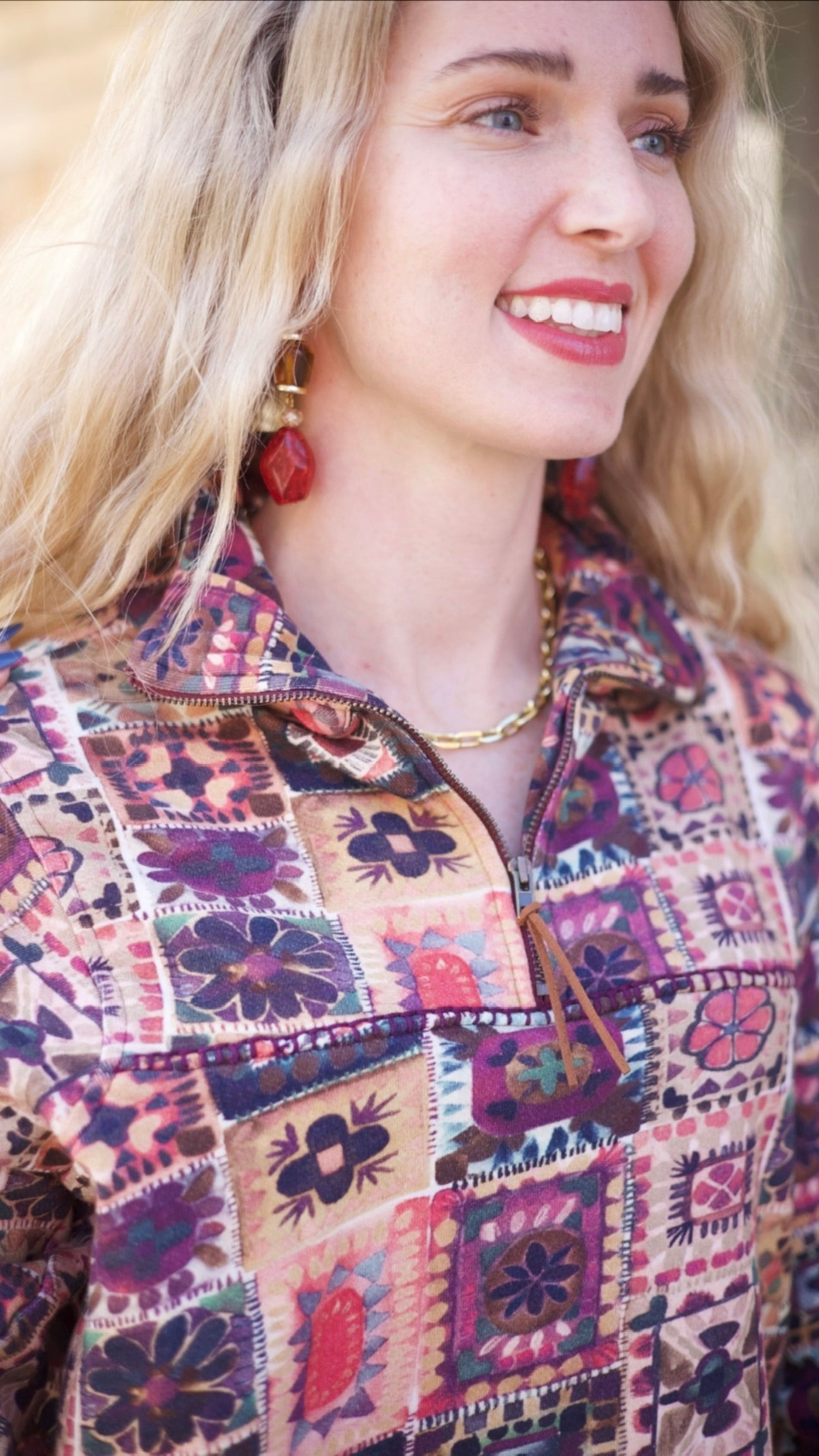 This Ivy Jane popover captures understated elegance in a gorgeous plum hue. Crafted from soft terry fabric with a convenient quarter-zip front, it's designed for those who appreciate both comfort and refinement. The muted color palette makes it a versatile layering piece that transitions seamlessly from fall into winter. Whether worn solo or paired with your favorite basics, this popover delivers effortless style with an adorable, approachable charm.